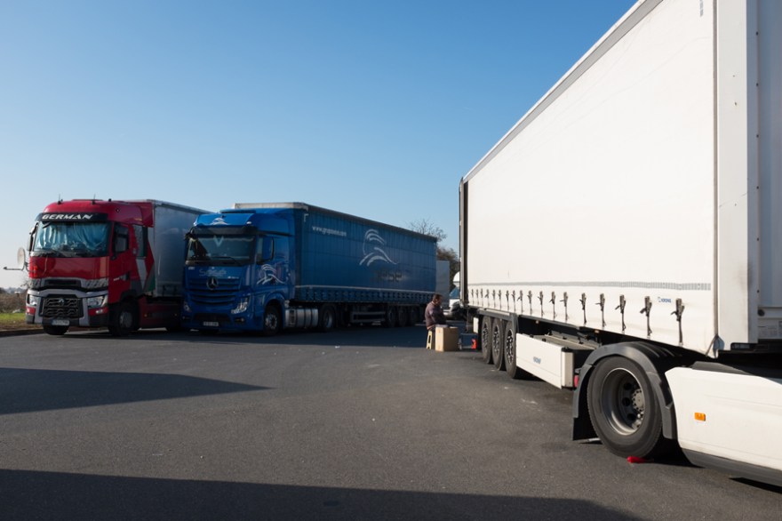 Les w-ends, certaines aires d’autoroutes se transforment en véritables villages de camionneurs, avec leur installation façon camping ou encore les files d’attente au lever du jour pour accéder aux douches.